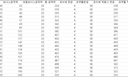 공식자료 기반 공효율 그래프 검은사막 인벤
