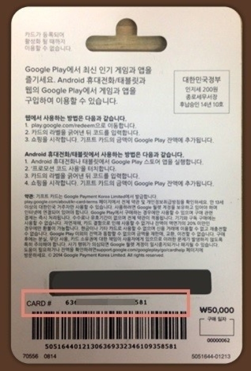 구글 플레이 기프트 카드 구입 Google Play Gift Card 한국에서도 판매