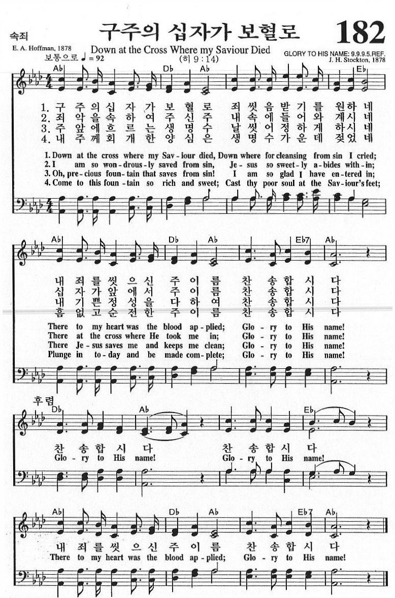 통합찬송가 한영 182장 구주의 십자가 보혈로 Down At The Cross Where My Saviour Died 새찬송가 250장