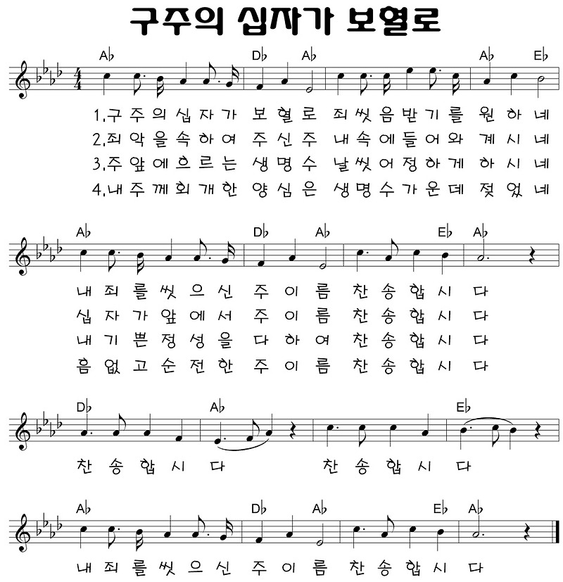 Musicday 구주의 십자가 보혈로 구 찬송가 큰글자악보
