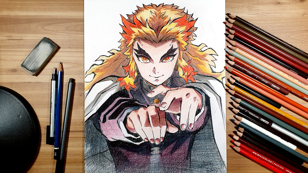 귀멸의 칼날 렌코쿠 쿄주로 무한열차 그리기 색연필 손그림 드로잉팩토리 Kakaotv