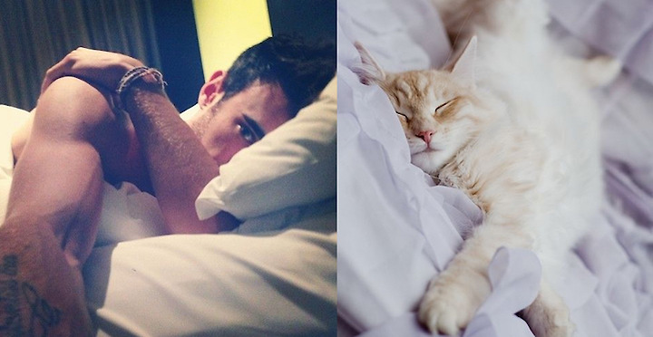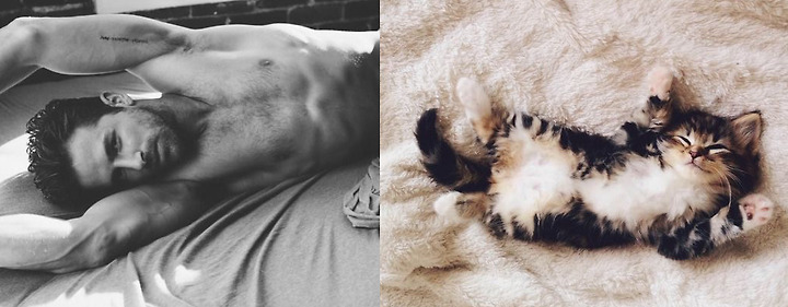 남자 모델들과 똑같은 포즈의 귀여운 고양이