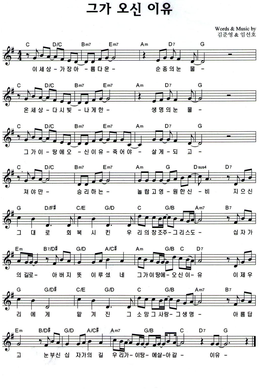 악보 게시판 임선호 그가 오신 이유 마커스워십 반주 악보 By 천정아