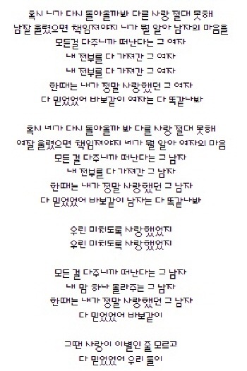 듣기 다운 가사 그남자그여자의사정 야야야 Full Ver 네이버 블로그