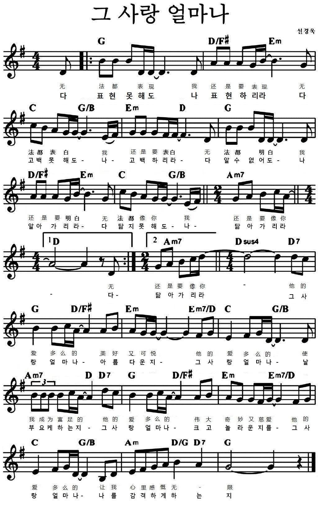 그 사랑 얼마나 악보