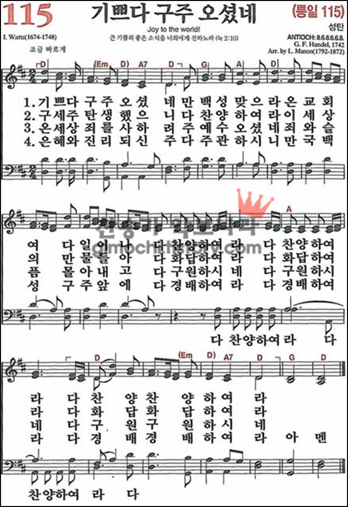 새찬송가 악보 115장 기쁘다 구주 오셨네