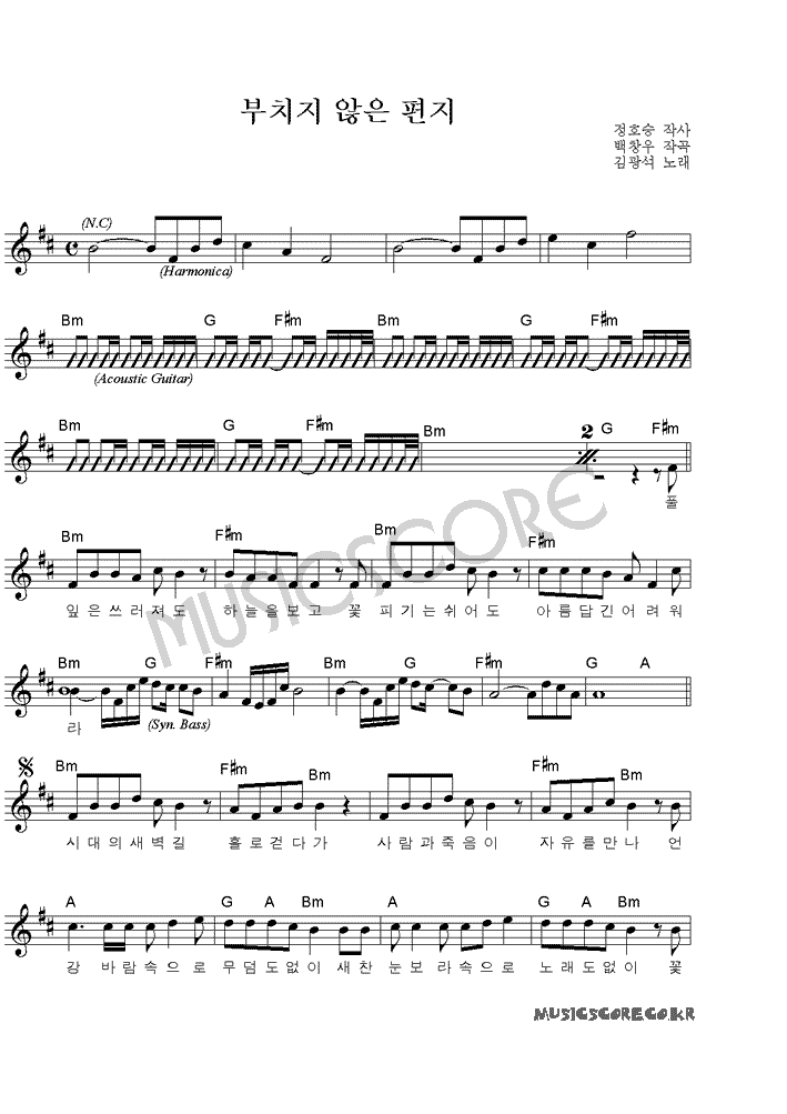 부치지 않은 편지 1과 가사 및 김광석이 노래 부르는 멜로디는 동일하지만 부치지 않은 편지 1이 하모니카와 기타만으로 반주를 했다면 부치지 않은 편지 2는 교향악단의 반주로 노래가 된다. Am em am am em am 시대의 새벽. 김광석 노래 부치지 않은 편지 계명 악보 공유하기. 김광석 부치지 못한 편지.