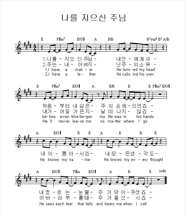 한글 영어 찬양 Ccm 악보 내 이름 아시죠 나를 지으신 주님 He Knows My Name E키 네이버 블로그