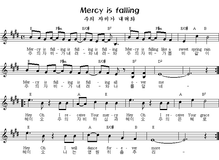 스크랩 Mercy Is Falling 주의 자비가 내려와 영어찬양 동영상 악보
