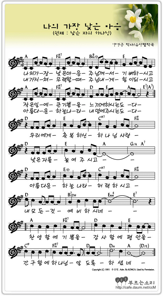나의 가장 낮은 마음 낮은 자의 하나님 악보 A코드 신나는 찬양 디사이플스 소리엘 찬양함에 기쁨을 네이버 블로그