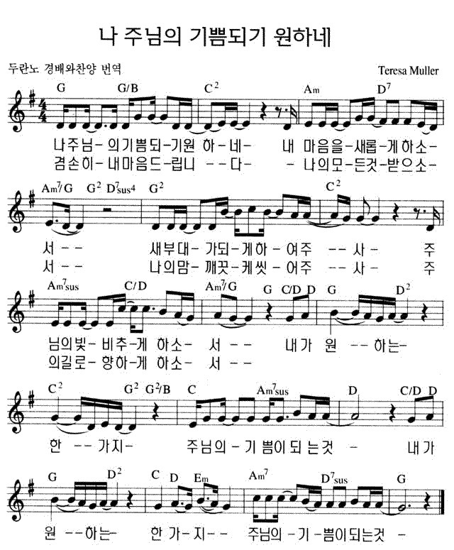나주님의기쁨되기원하네 G 가사 악보 네이버 블로그