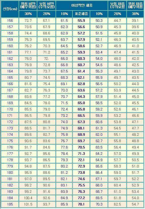 남자 표준 몸무게 체중 미용몸무게 계산법 비만도 네이버 블로그