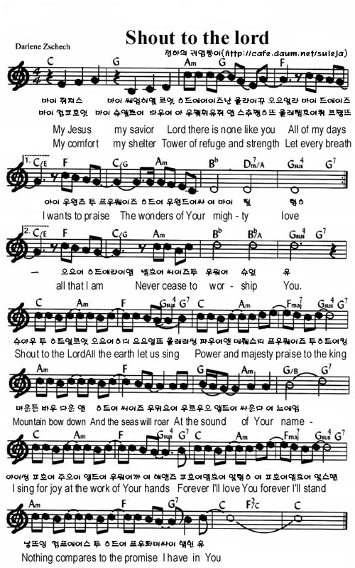 복음성가 내 구주 예수님 Shout To The Lord Ccm 듣기 영상 악보 네이버 블로그