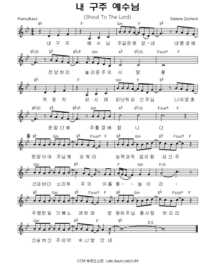 악보 Shout To The Lord 내 구주 예수님 영문 악보 Bb코드 네이버 블로그