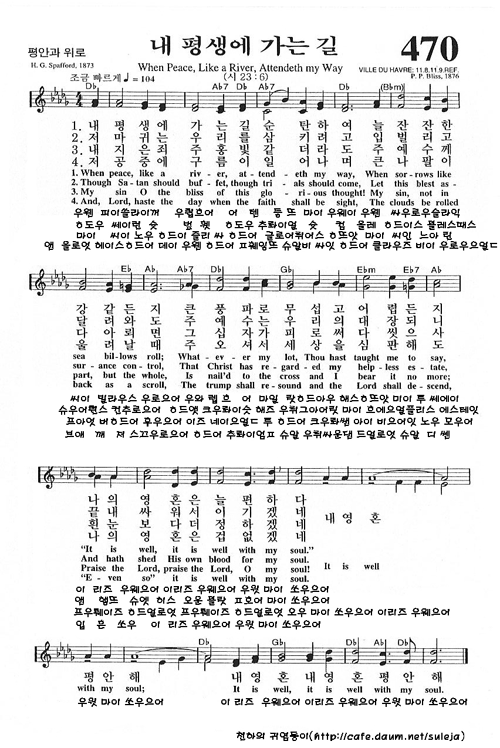 在 영어 찬송 470장 내 평생에 가는 길 When Peace Like A River Attendeth My Way 在 영어찬양악보 영생의 말씀