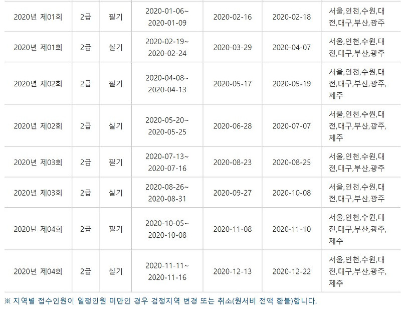 2020년도 네트워크관리사 1급 2급 자격검정 시험 일정