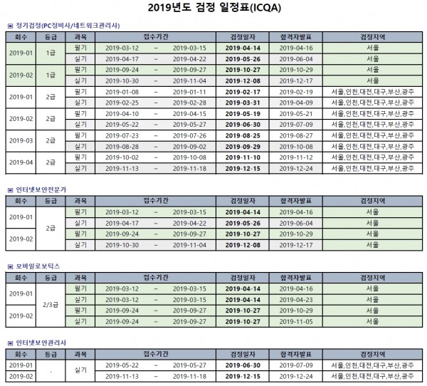 2019년 검정일정 안내 공지사항 사 한국정보통신자격협회