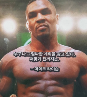 지식 경영 공장 누구나 그럴싸한 계획은 가지고 있다 처맞기 전까지는 마이크 타이슨의 주식 명언과 움짤 사진