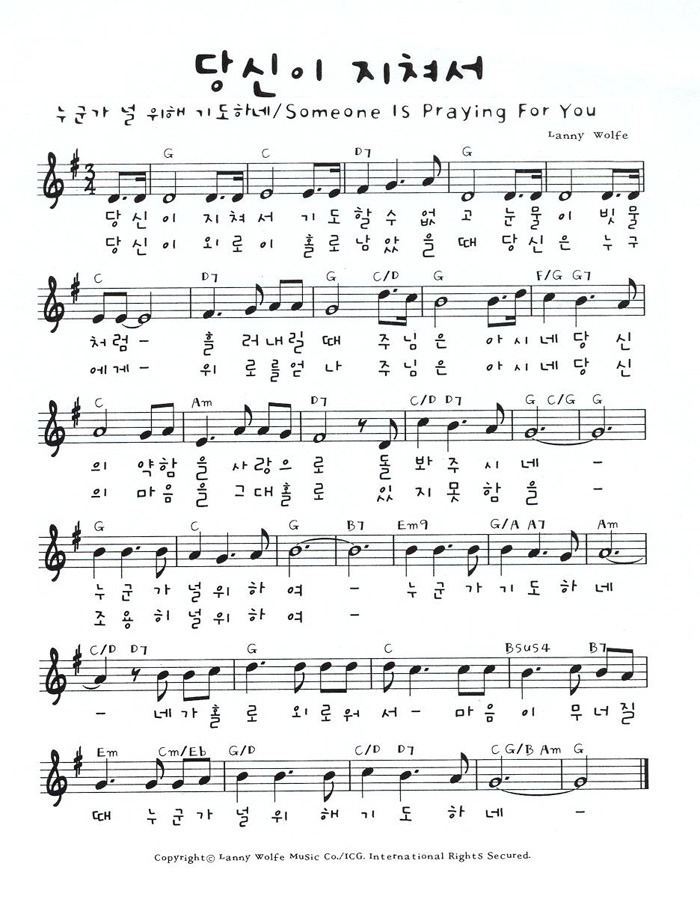 Ccm악보 누군가 널 위해 기도하네 Someone Is Praying For You Lanny Wolfe 영문병기 G키 네이버 블로그