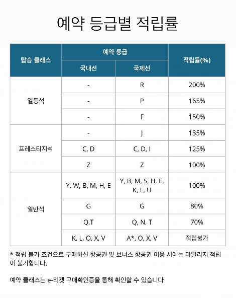 대한항공 클래스별 마일리지 적립 안내 네이버 블로그