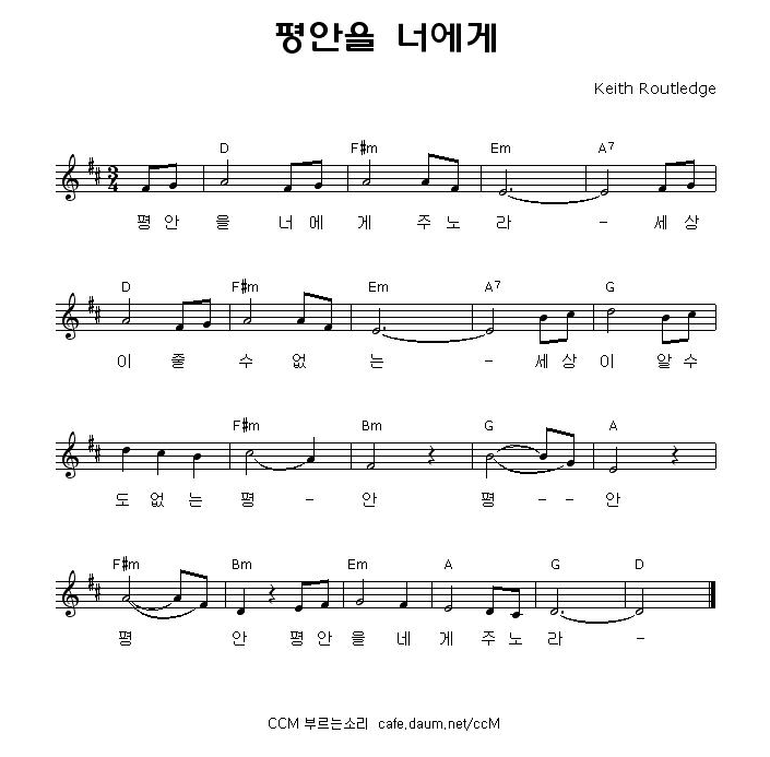 평안을 주노라 김종찬 2집 또 하나의 열매를 바라시며 악보 Mp3