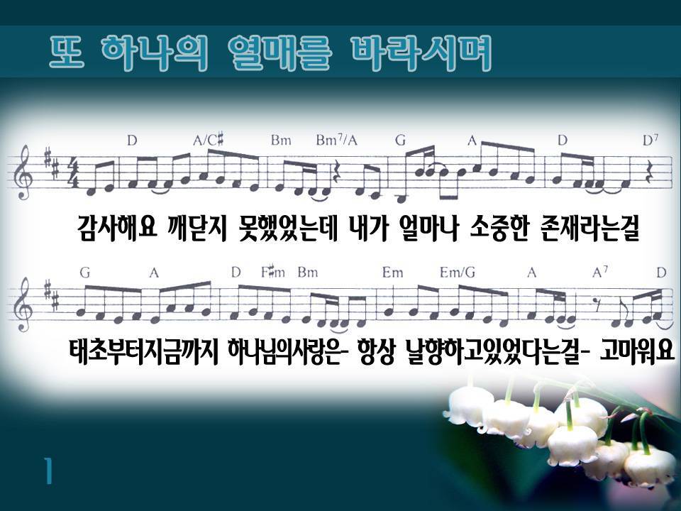 Ppt악보 또 하나의 열매를 바라시며 감사해요 깨닫지 못했었는데 찬양ppt 영어성경 영어찬양 은혜교회 경기도 안양시 동안구 덕천로 182