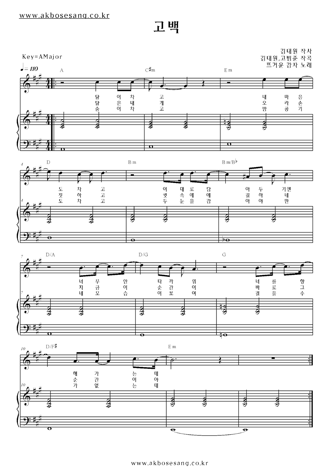 악보 뜨거운 감자 고백 피아노악보 최신가요악보