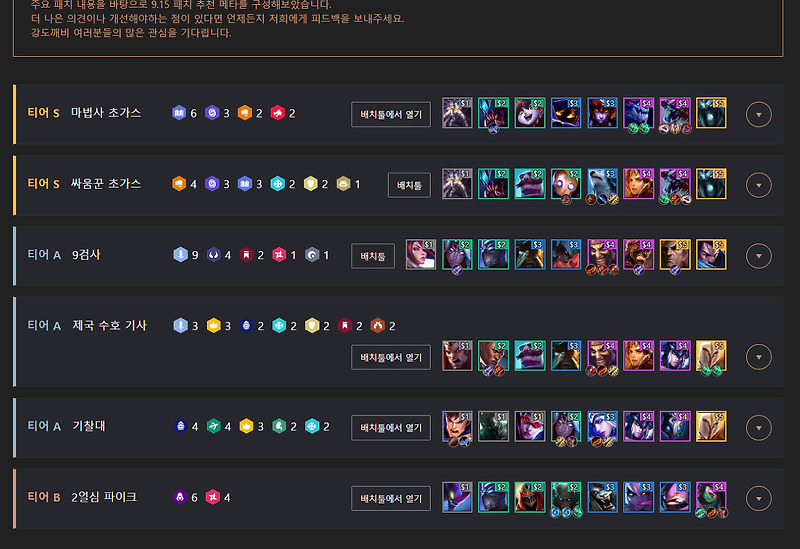 롤토체스 9 22 시너지가이드 Ss티어 A티어 롤체지지 전략적 팀 전투 Tft 롤토체스 전적검색