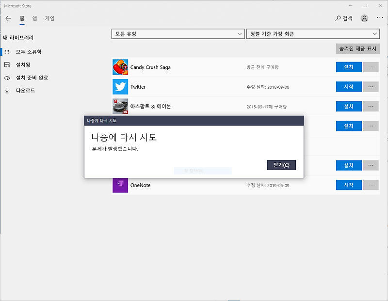 윈도우스토어 앱 업데이트 및 게임 설치가 안됩니다 Microsoft 커뮤니티