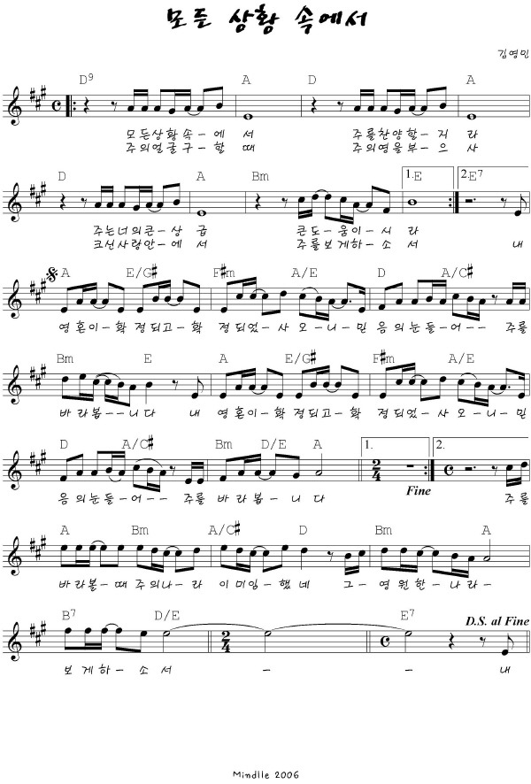 Ccm 악보전문 악보엘 모든 상황 속에서