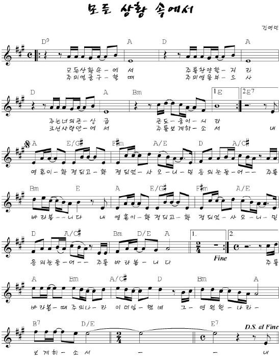모든 상황 속에서 하땅고 악보 경주남부교회