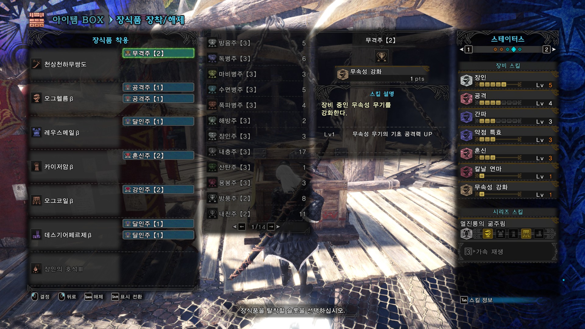 수비대 태도 역왕 태도 세팅 몬헌 인벤