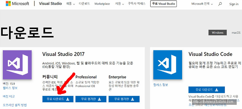 비주얼 스튜디오 2017 설치 방법 나는 개발자다