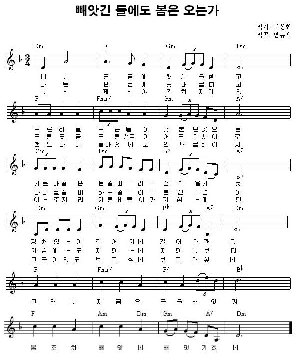 그림악보 Mr 빼앗긴 들에도 봄은 오는가