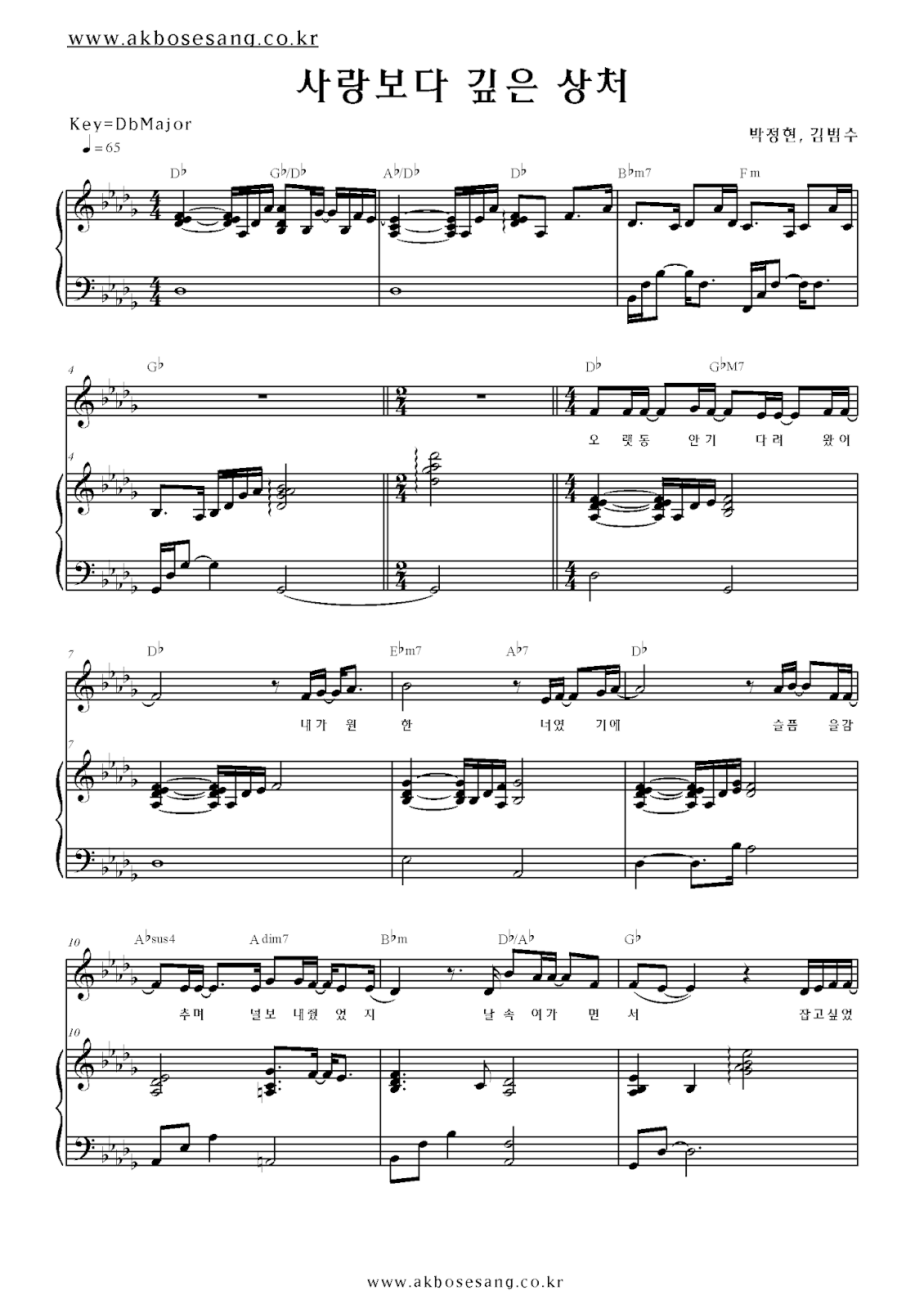 악보 박정현 김범수 사랑보다깊은상처 박정현 김범수 악보 사랑보다깊은상처 피아노악보 코드악보 최신악보