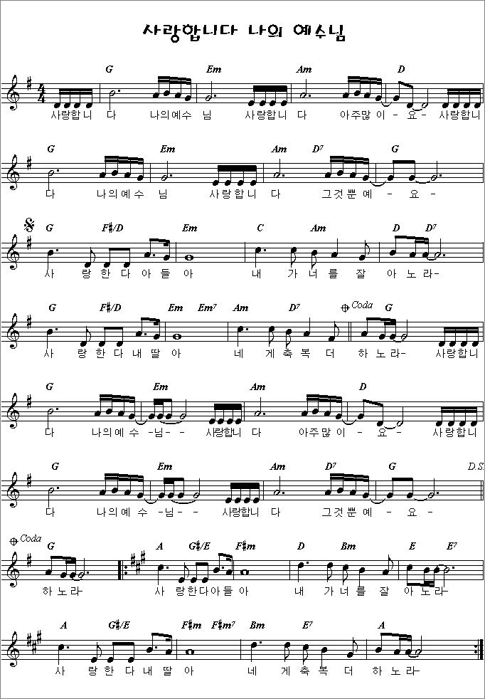 Ccm 사랑합니다 나의 예수님 G키 찬양 악보 가사 네이버 블로그