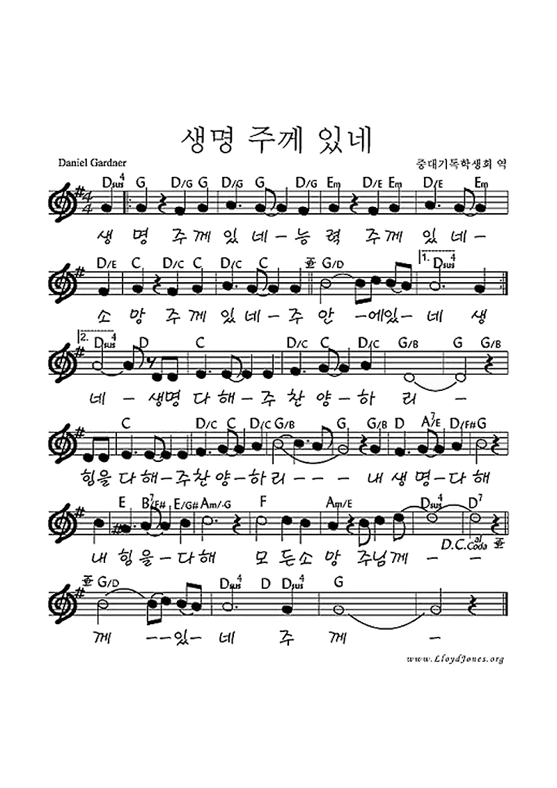 My Life Is In You Lord 생명 주께 있네 악보 가사 그리심산 Gerizim