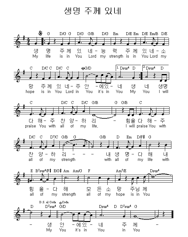 My Life Is In You 생명 주께 있네 악보 노래 찬양방 올바니 알바니 사랑의 교회 Albany Sarang Fellowship Korean Methodist Church New York