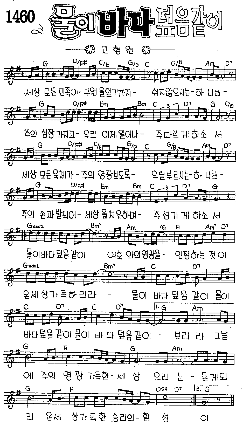 세상모든민족이 물이바다덮음같이 Ppt악보