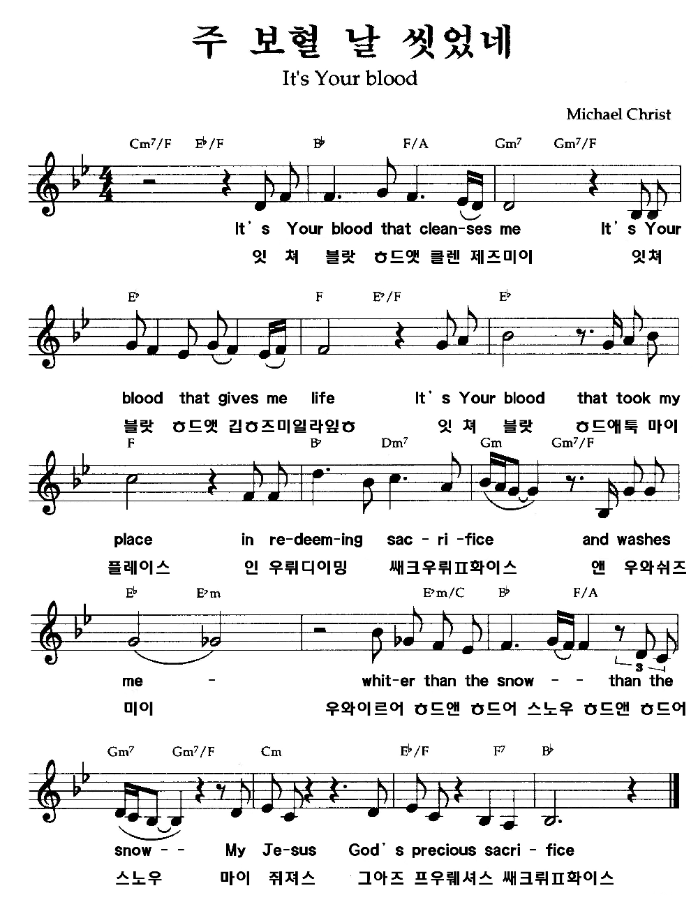 스크랩 영어찬양악보 It S Your Blood 주보혈 날 씻었네