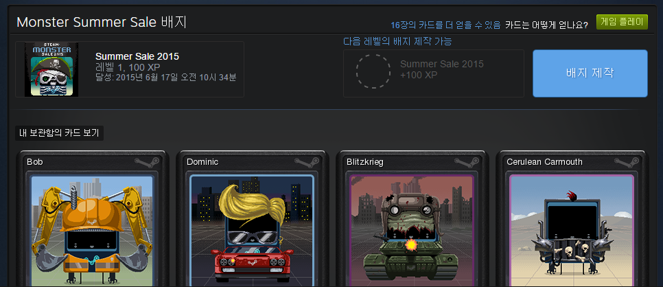 스팀 2015 여름 세일 배지 레벨2 제작