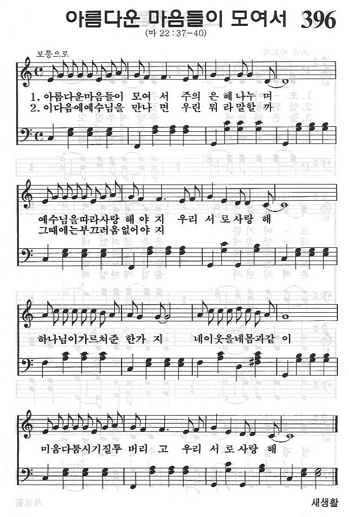 0047 아름다운 마음들이 모여서 복된소망 복음찬송가 악보 보기 곡 검색 복음찬송가