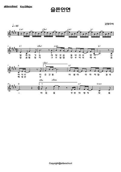 공일오비 아주 오래된 연인들 멜로디코드 악보 Ost악보 최신가요악보 팝송악보 축가악보 Ccm악보 동요악보 입시악보 악보스쿨 악보 가사 엠알