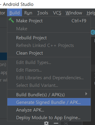 안드로이드 스튜디오에서 Apk를 만드는 방법 서명 된 번들 생성