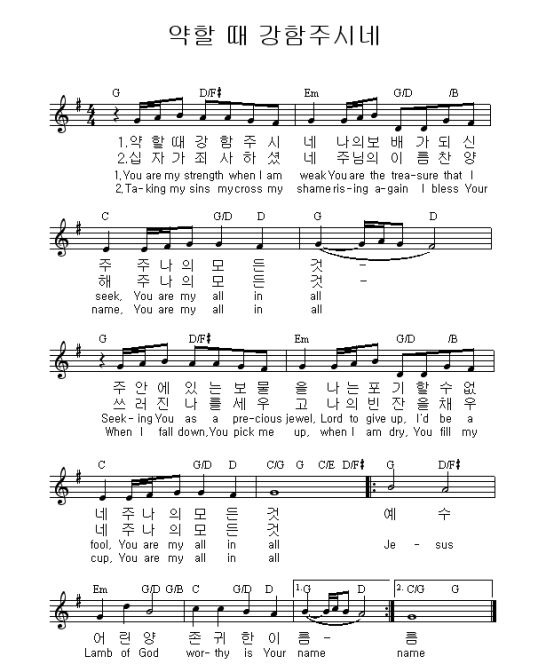 악보나눔 약할 때 강함되시네 E F G 네이버 블로그