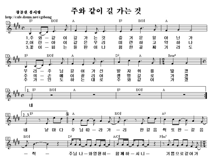 Ccm 악보전문 악보엘 주와 같이 길 가는 것