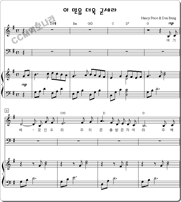 악보 게시판 Don Besig Nancy Price 이 믿음 더욱 굳세라 반주악보 By 천정아