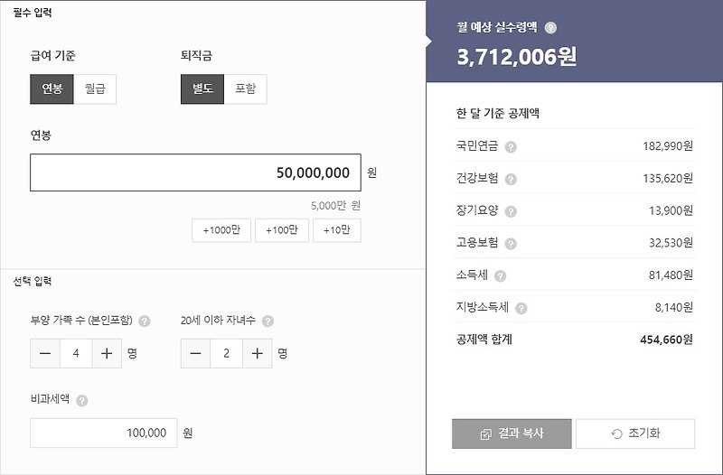 2020연봉 실수령액 연봉 5 000실수령과 연봉계산기 비교