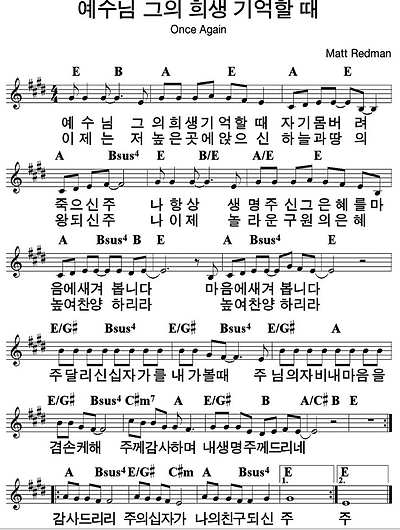 예수님 그의 희생 기억할 때 다시 한 번 E코드 찬양 Ccm 악보 가사 Ppt