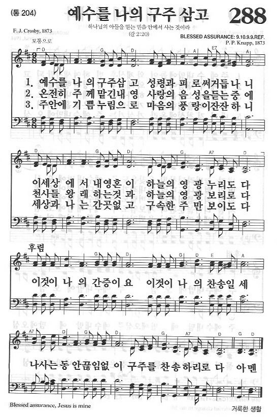 새찬송가 한영 288장 예수를 나의 구주삼고 Blessed Assurance Jesus Is Mine 통합찬송가 204장 Nwc 무배경 Ppt악보